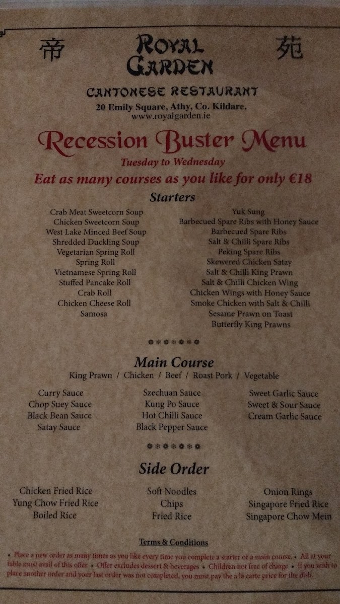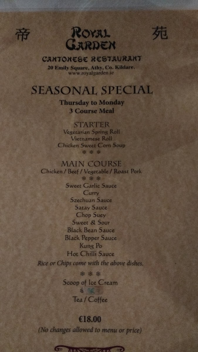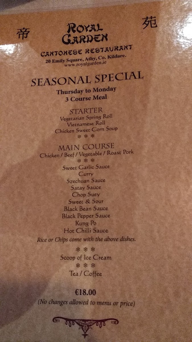 The menu at Royal Garden Cantonese Restaurant & Takeaway offers a delightful mix of flavors that caters to a wide range of tastes, with both classic Cantonese dishes and house specialties. A standout choice is the House Special Fried Rice, a hearty and flavorful dish that's perfect for anyone craving a satisfying meal. The Chicken Curry is another crowd-pleaser, offering a rich and aromatic sauce paired with tender chicken.